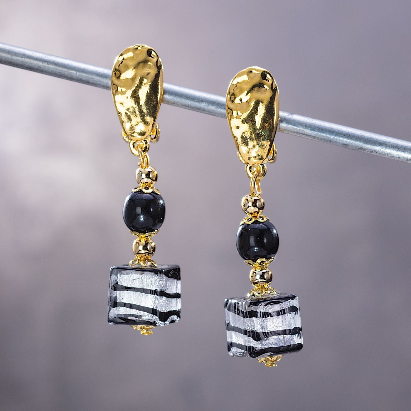 Murano Glass Concentric Cubes Clip-On Earrings