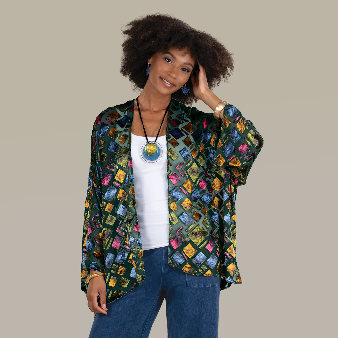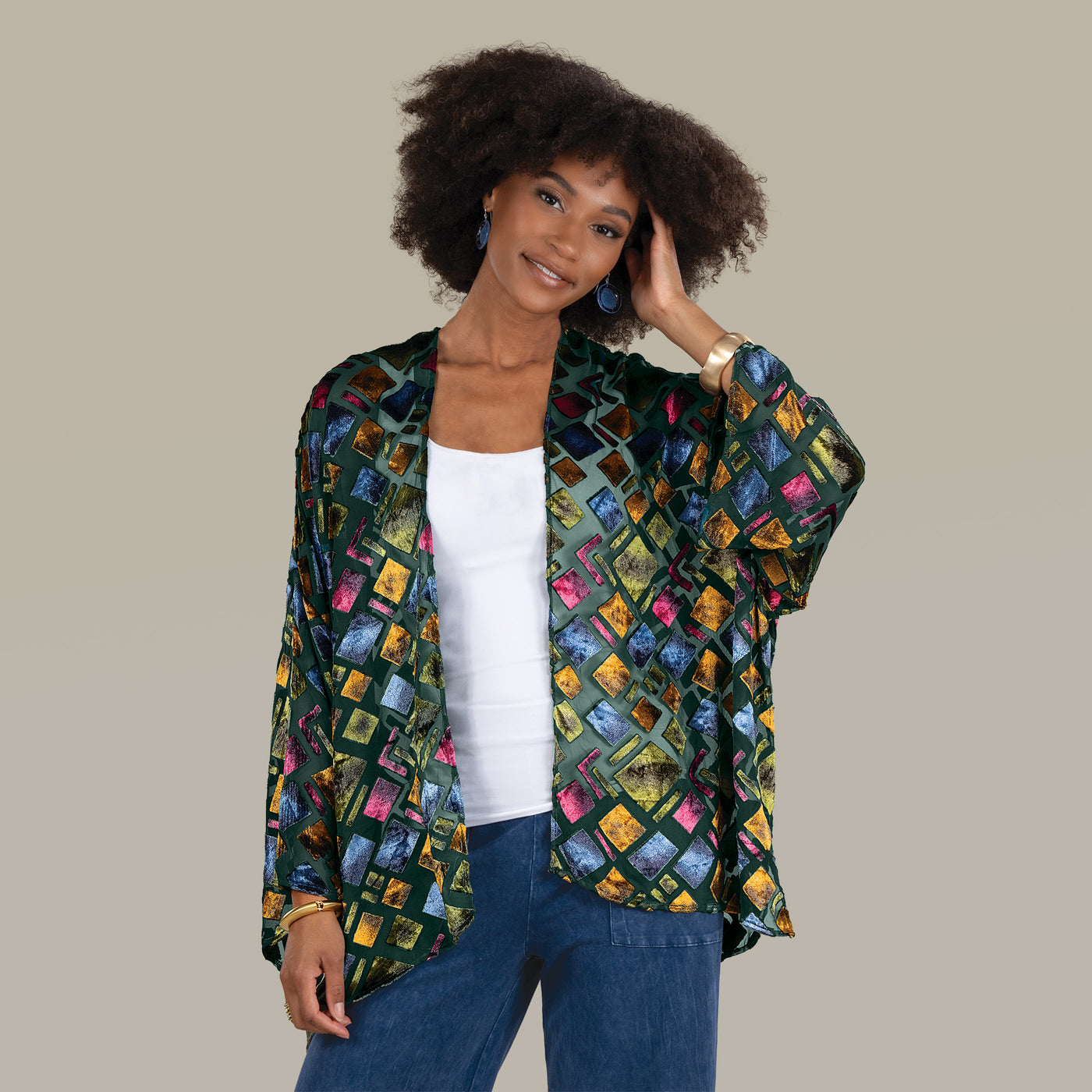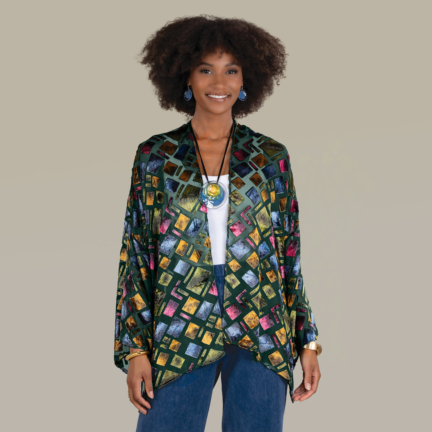 Prismatic Patterned Burnout Kimono
