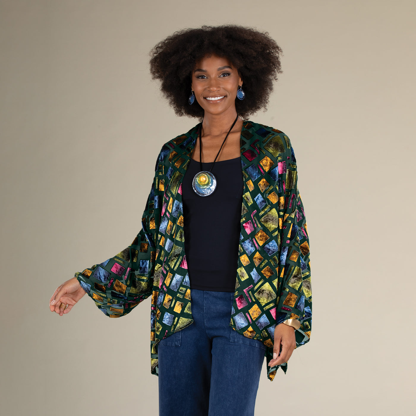 Trained as a painter and printmaker, Elizabeth designed her first scarf after being unable to find a replacement for a lost favorite. Today, eighteen years later, the sights and sounds of New York City inspire her colorful creations. After designing each scarf and kimono in her New York City loft, she collaborates with master artisans in Delhi, India, who create each one from high quality fabrics, one at a time.