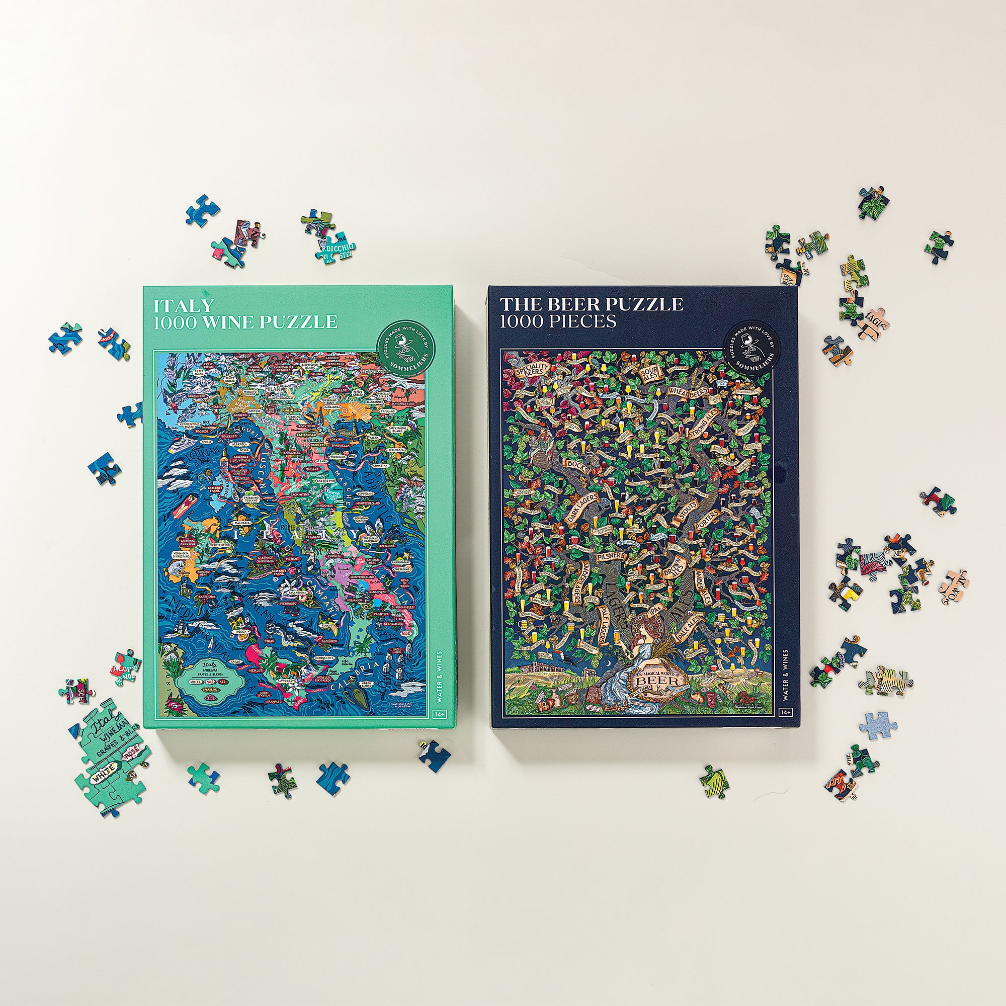 A collaboration of a sommelier and puzzle enthusiast, Yamit and Mathilde of Dallas and their love of travel and taste inspired the idea to create captivating puzzles. Working alongside local industry experts, this crafted puzzle encapsulates the essence of the world of beer. Each puzzle is rigorously researched, sustainably made, and expertly crafted. Contains 1000 pieces. Approx. 19'' x 26''.