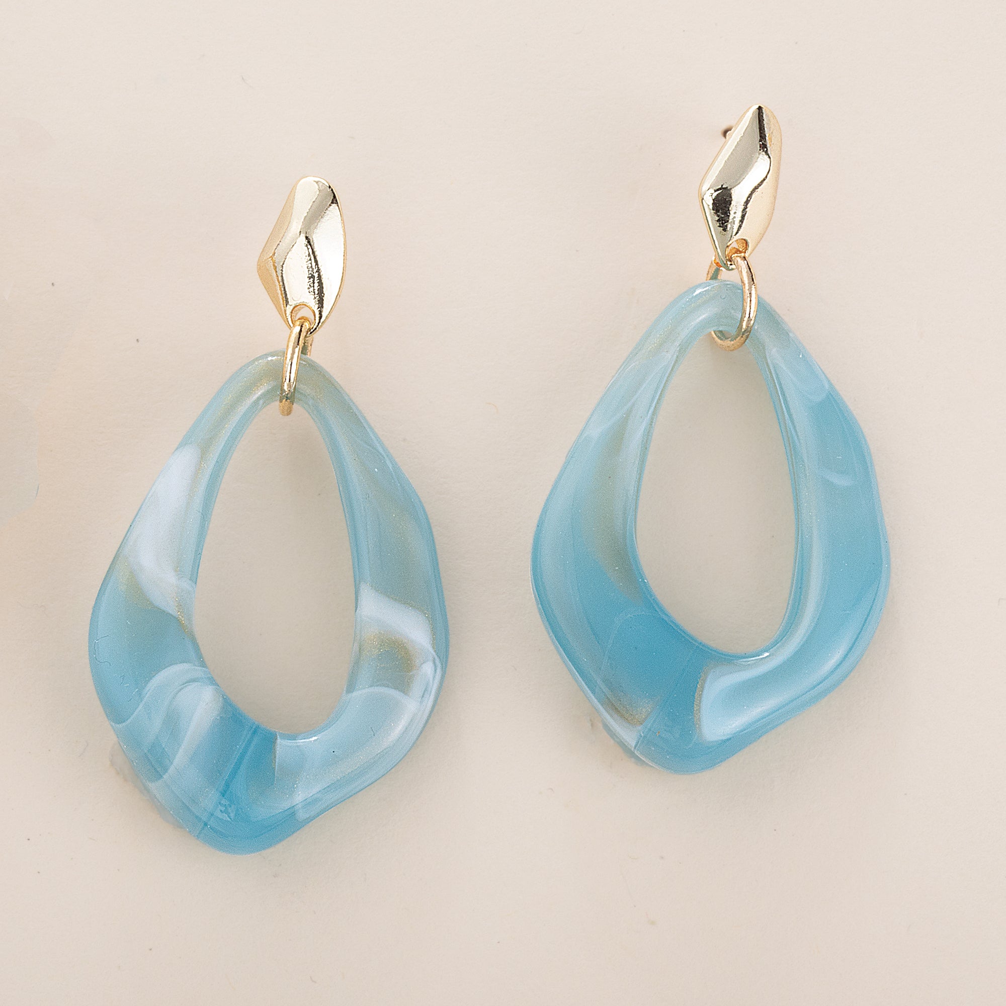 Artisan Vivian of Texas designs these long teardrop earrings with resin and blue ombre coloring with touches of gold. Accented in gold-plated brass. Designed in Texas, made in Thailand. Approx. 1.85'' long, posts.
