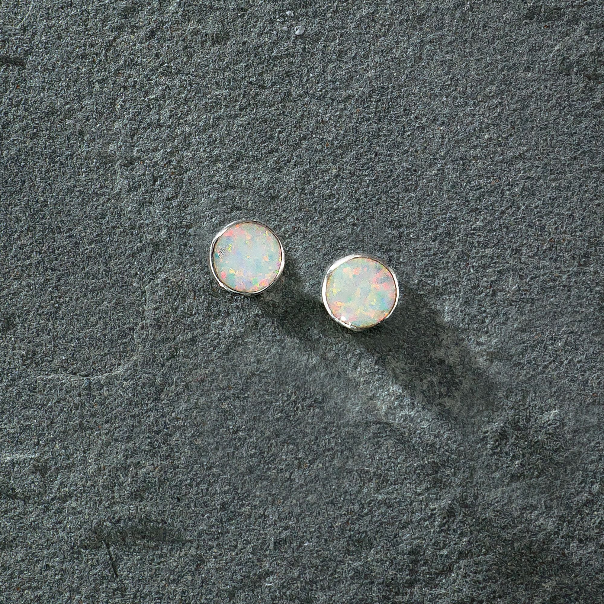 These sterling silver circle earrings are inlaid with a matrix of iridescent white opal by Leon Nussbaum, our London silversmith. Opal, considered ''the queen of gems,'' can flash patterns of color representing every hue of the rainbow as they flicker and change with every movement of the wearer. Believed by ancient peoples to actually contain fire, opal has long been ascribed many mystical and healing properties. These opal and sterling silver circle earrings are masterfully handcrafted exclusively for Uno Alla Volta, from the heart and hands of the artisan. No two are exactly alike. Earrings measure approx. 0.50 inch long, posts.