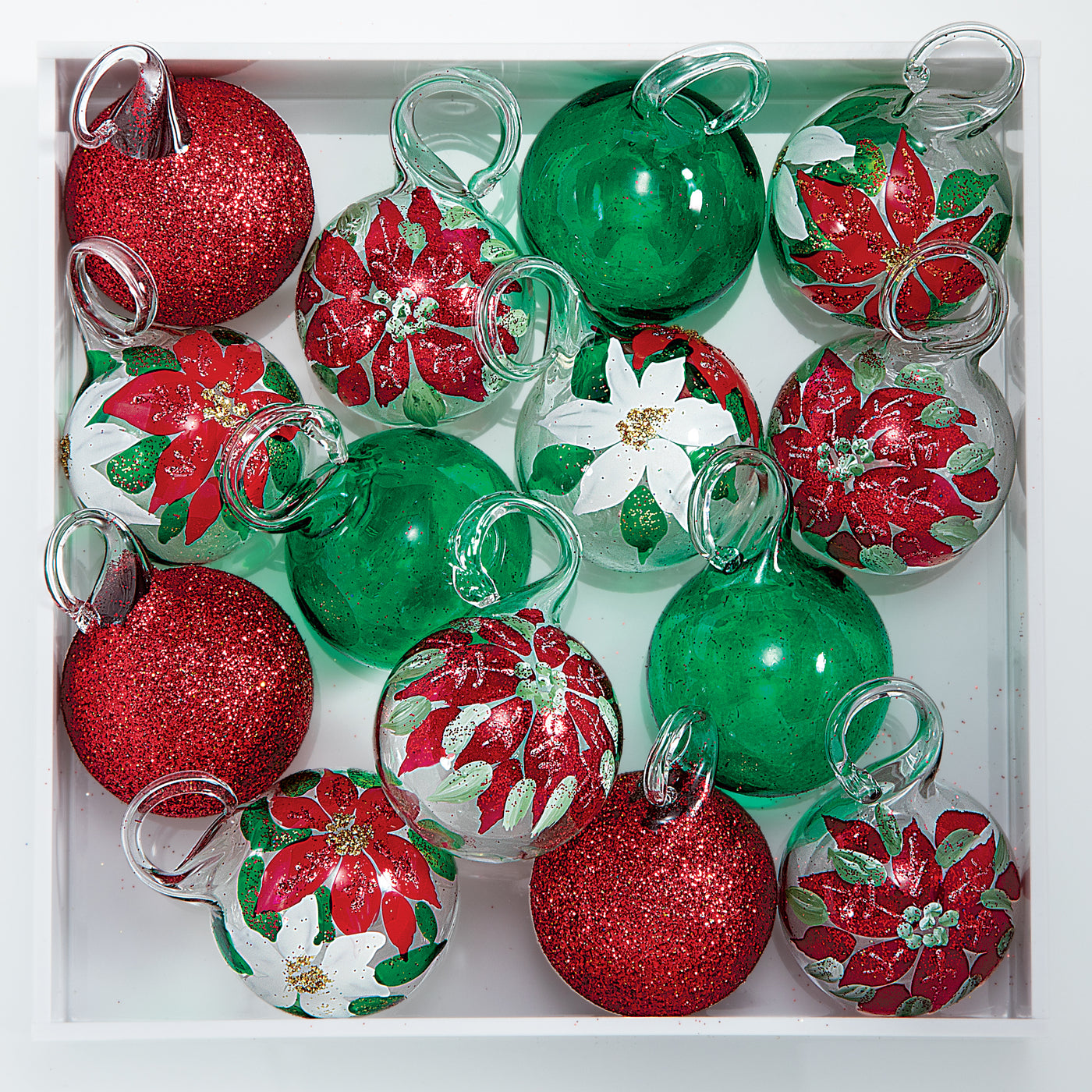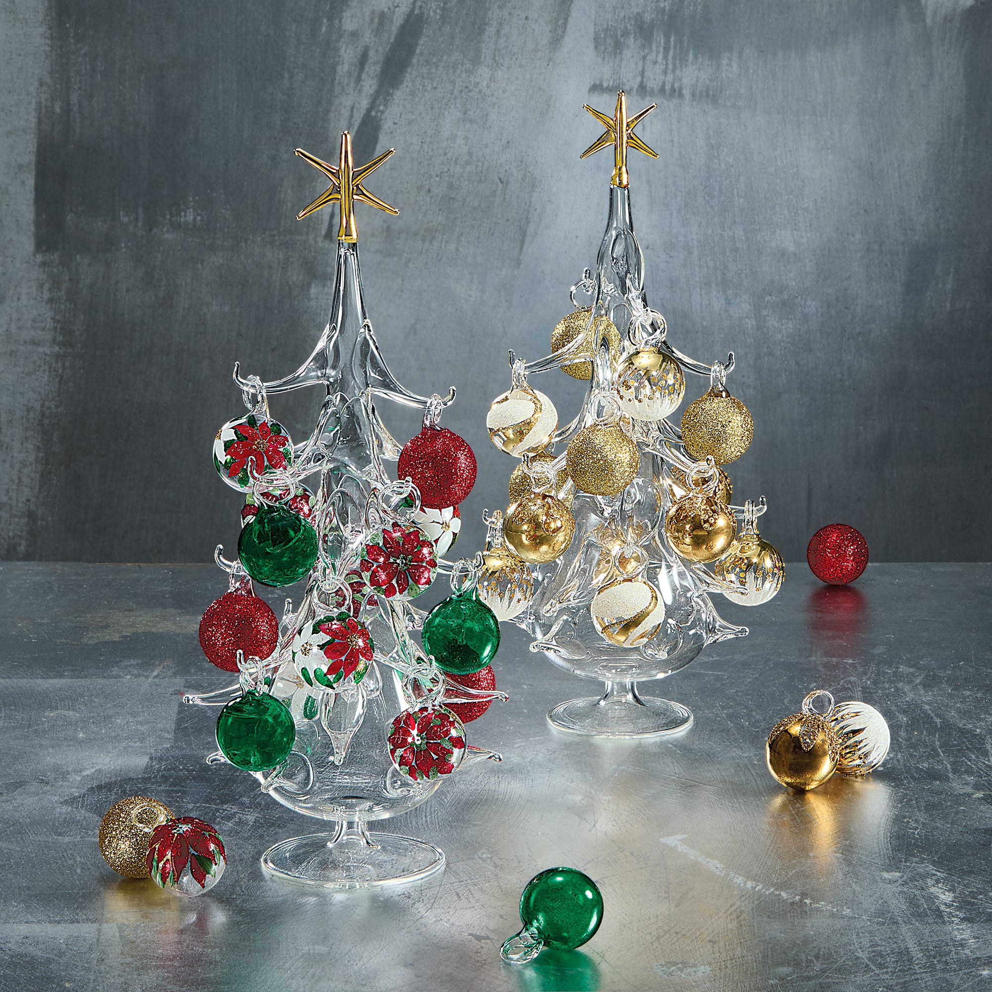 Hand-Blown Venetian Glass Stella Di Natale Ornaments Set Of 14