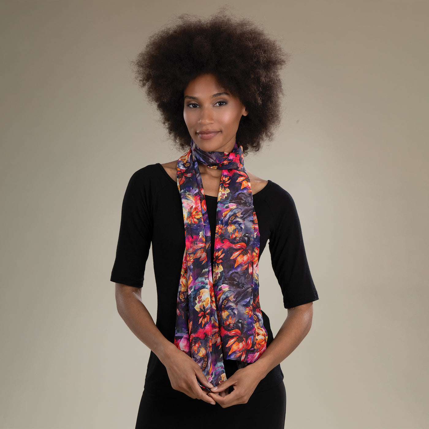 Trained as a painter and printmaker, Elizabeth designed her first scarf after being unable to find a replacement for a lost favorite. Today, eighteen years later, the sights and sounds of New York City inspire her colorful creations. After designing each scarf and kimono in her New York City loft, she collaborates with master artisans in Delhi, India, who create each one from high quality fabrics, one at a time.