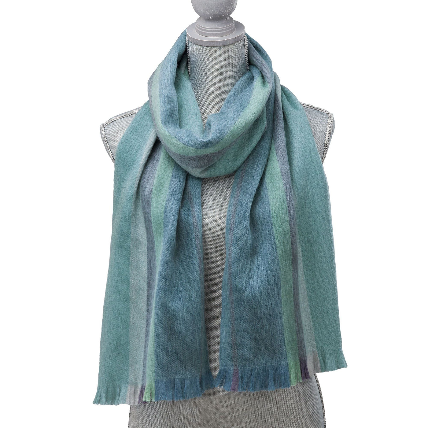 Our weavers in the Andean Quechua communities of Ecuador and Peru use centuries-old looms to handcraft this contemporary striped alpaca scarf from one of nature's most versatile and renewable materials. Warmer than wool, this silky, hypoallergenic scarf is hand-woven of 80% pure alpaca with 20% acrylic for resilience. Hand wash. Handcrafted for Uno Alla Volta, from the heart and hands of the artisans. Dimensions - Approx. 72'' x 11''.