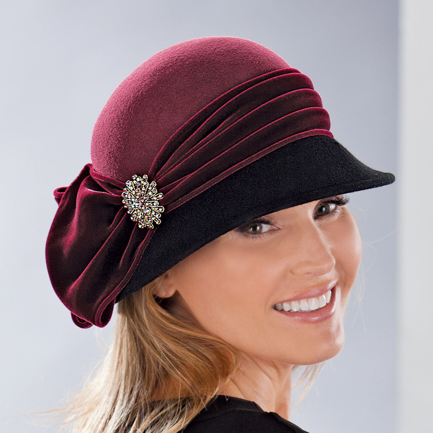 I saw some reviews that people were complaining about the style of the hat and not being able to see with the brim. That is the Beauty of this Cloche-Style Hat! Don't bastardize this gorgeous work of art by pinning it up. This hat is PERFECT just as it is. It's my favorite of all the hats I have. One question, Carole, I just ordered your new hat The Genevieve(?) and am so excited to get it. Why do you use Italian wool? What makes it different than any other types of wool? Very curious about this answer.Thank you for bringing Herrods to the USA via your skills in hat making. You are phenomenal in your skill and styles. I swore to my partner that I will Not think of my new purchase, his Christmas gift to me...I will think of it Every Day until Christmas, but am trying to block my excitement. Sending peace and good health.