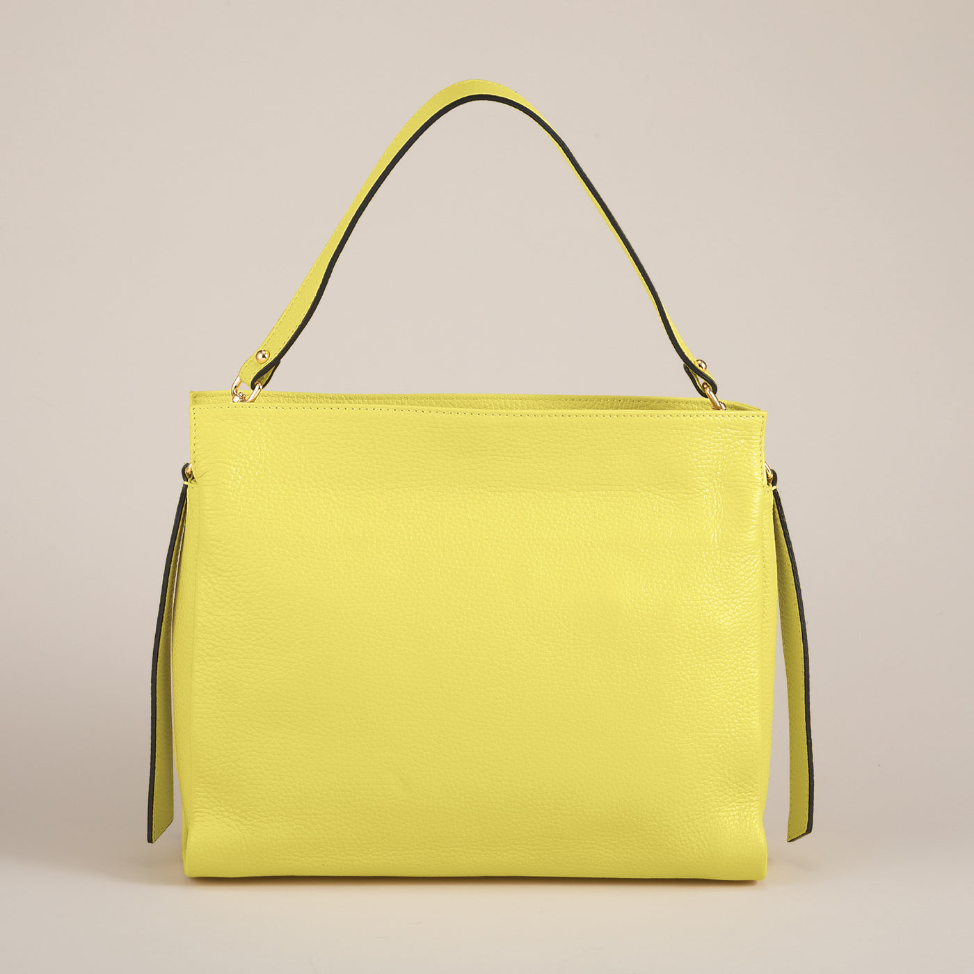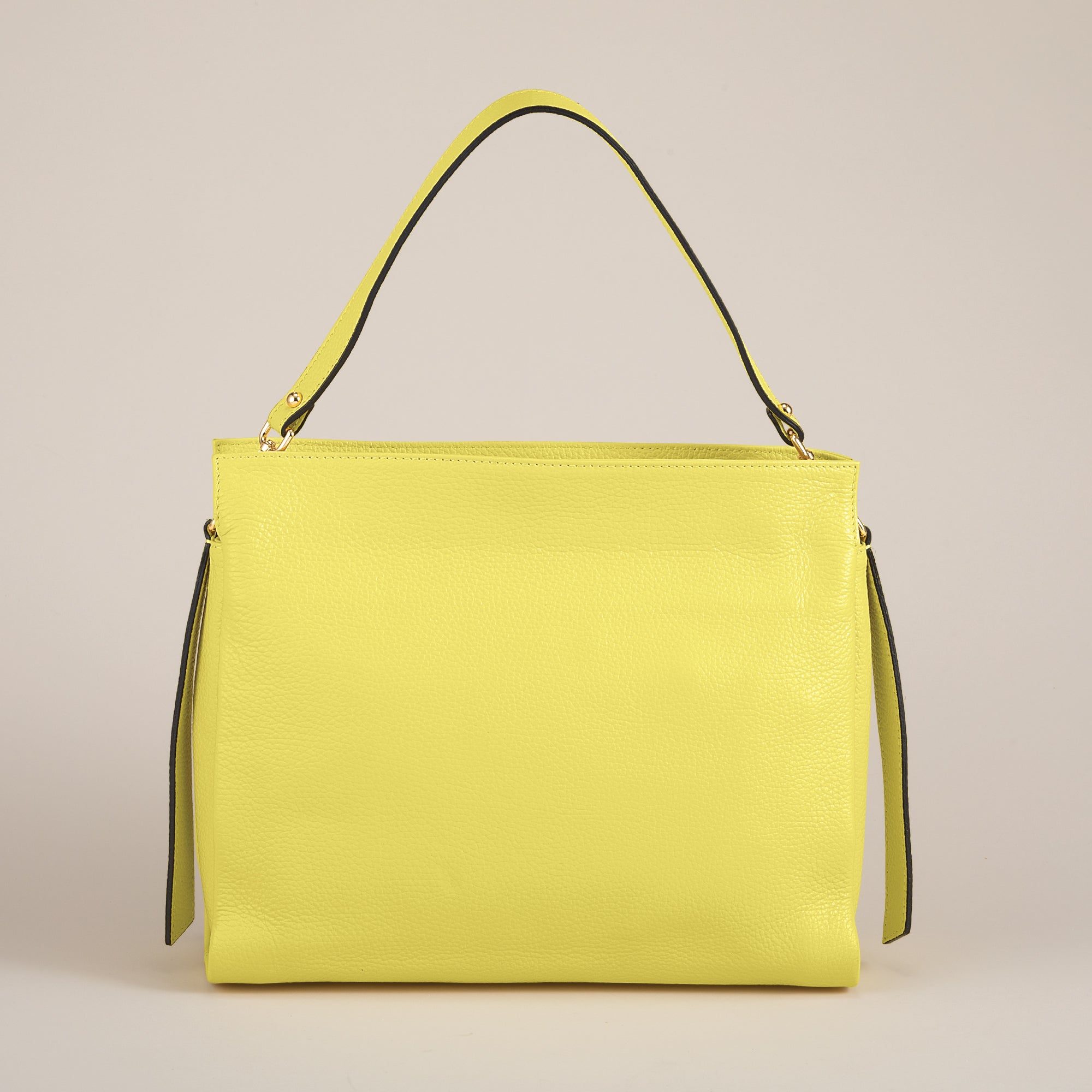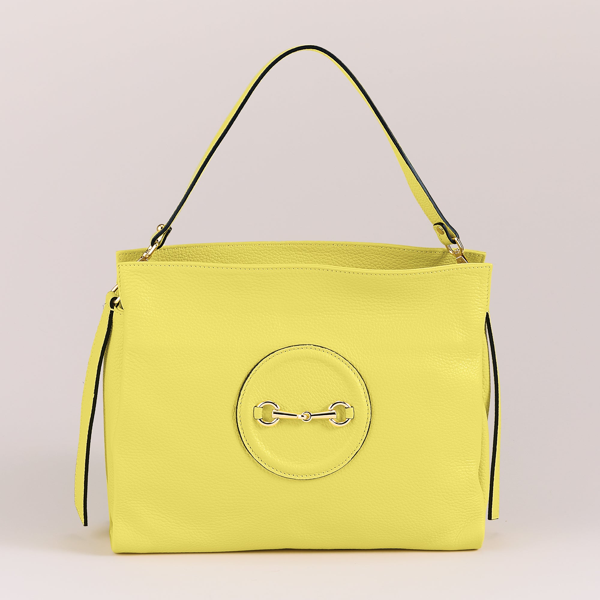 Artisan Marco of Florence creates this crossbody bag in a soft, buttery yellow Italian leather. Approx. 12'' x 5'' x 10'' with a 10'' strap, two interior zip pockets, and two interior slip pockets. Cloth lined, with a decorative link embellishment, and a zipper closure.