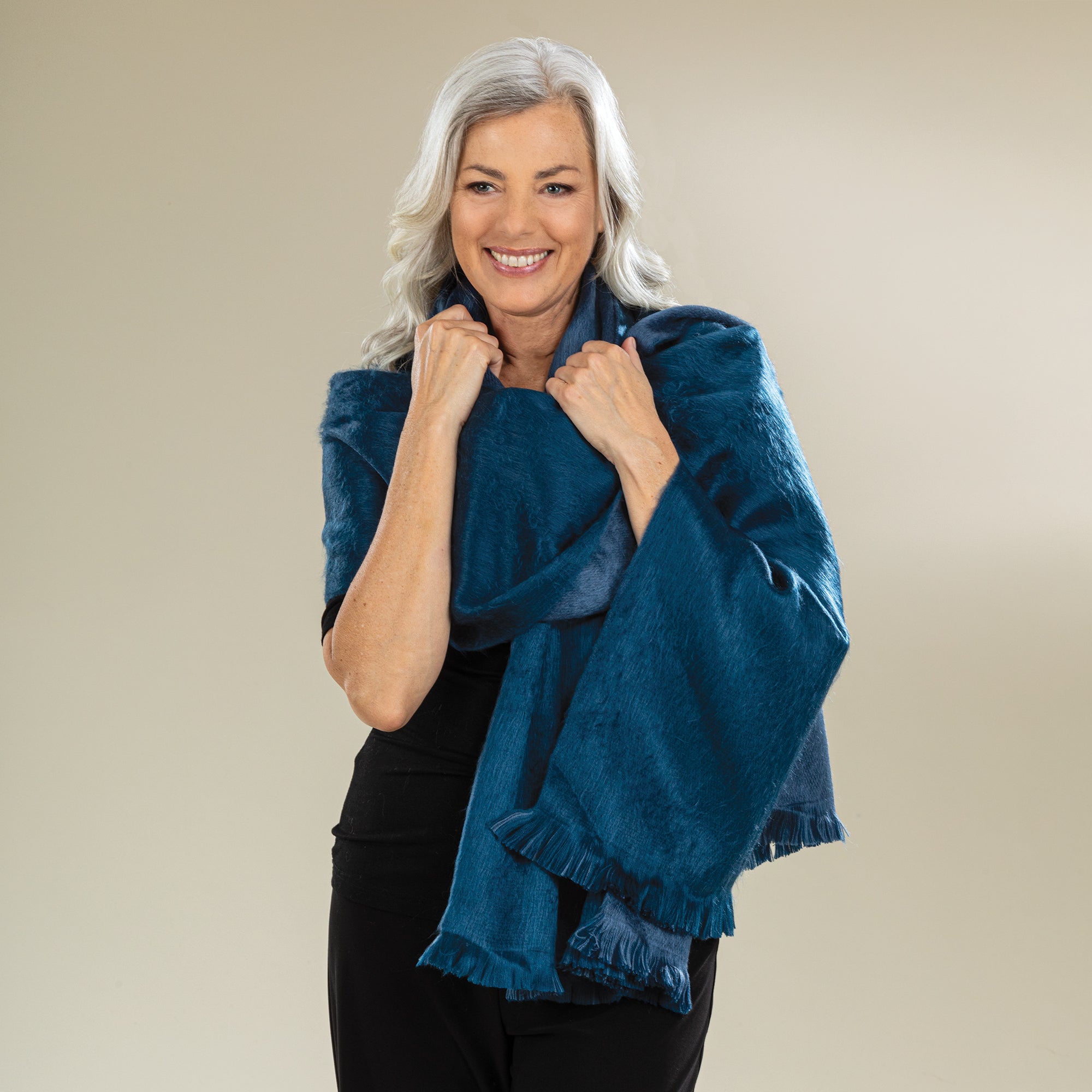 Our weavers in the Andean Quechua communities of Ecuador and Peru use centuries-old looms to handcraft this contemporary alpaca ruana shawl from one of nature's most versatile and renewable materials. Warmer than wool, this silky, hypoallergenic piece is hand-woven of 80% pure alpaca with 20% acrylic for resilience. Hand wash. One size fits most. Handcrafted for Uno Alla Volta, from the heart and hands of the artisans. Dimensions - Approx. 80'' x 27''.