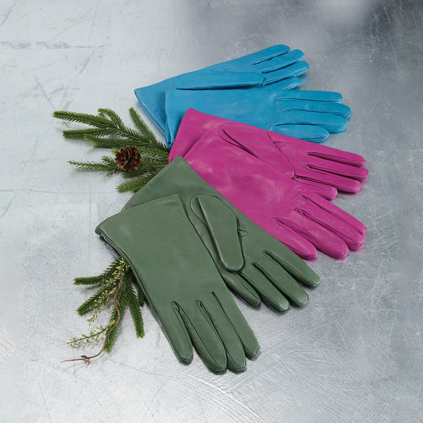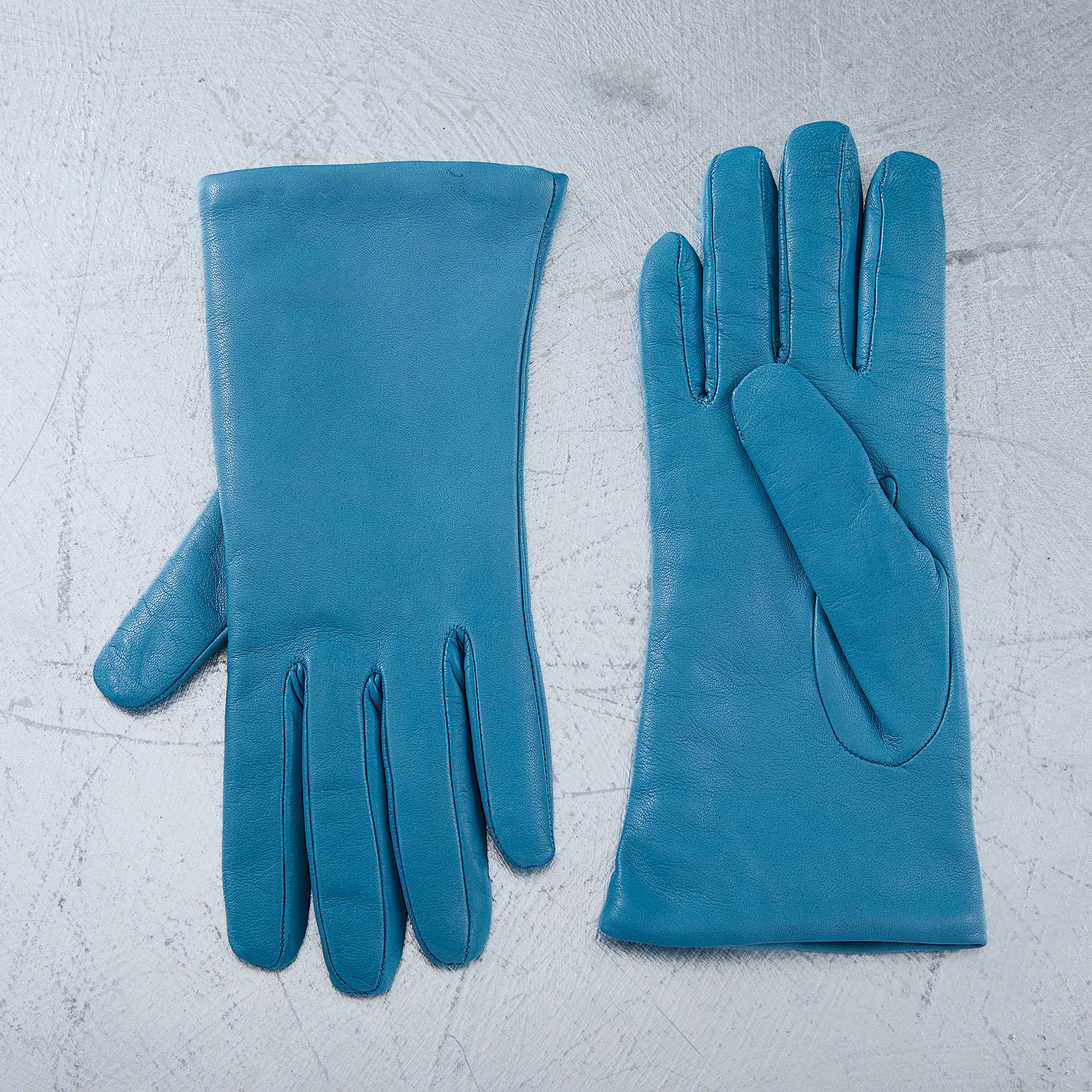Artisans Giuseppe and Daniela of Naples handcraft these luxurious and warm, supple European leather gloves, in this attractive aqua shade. Lined with 100% cashmere. Available in sizes S-XL.