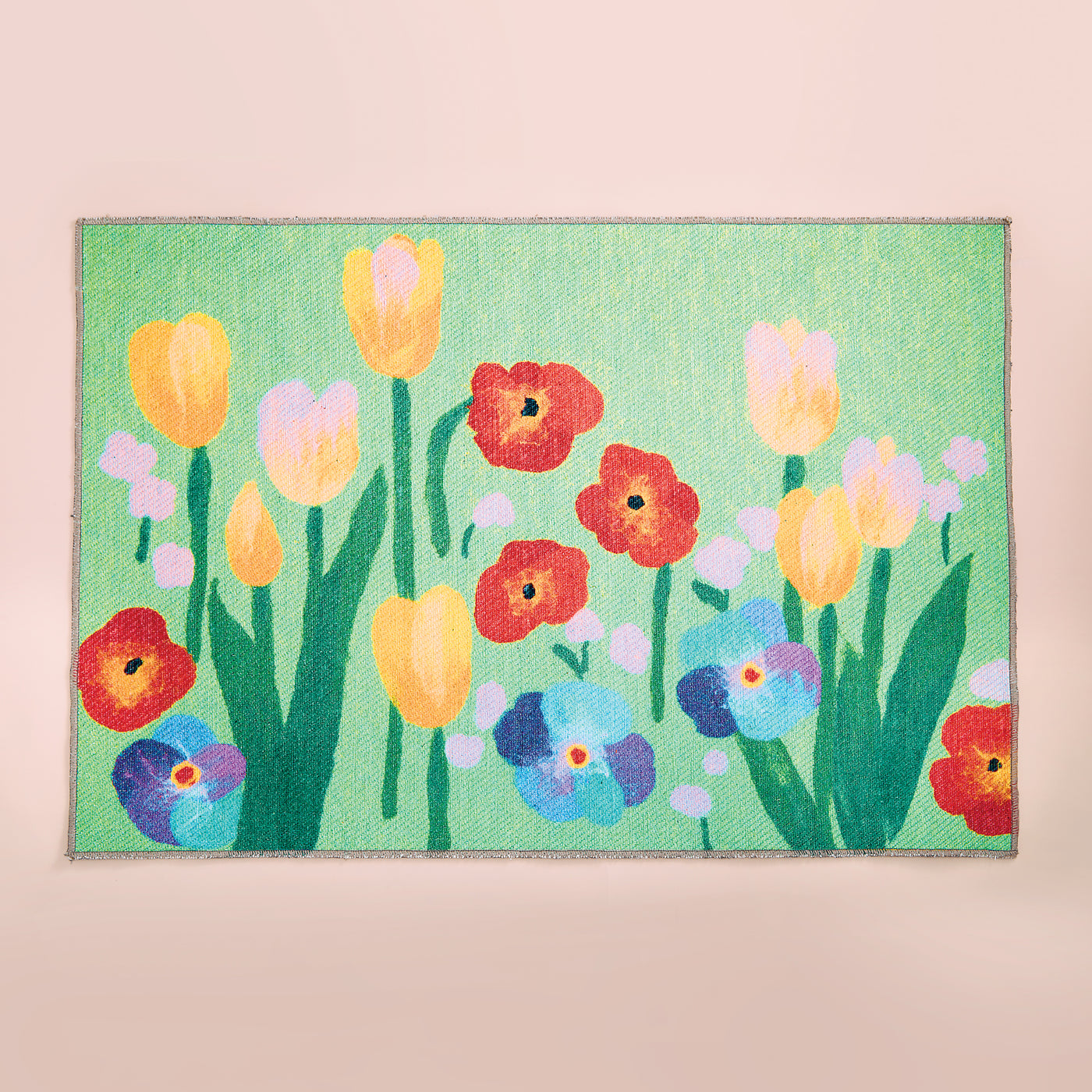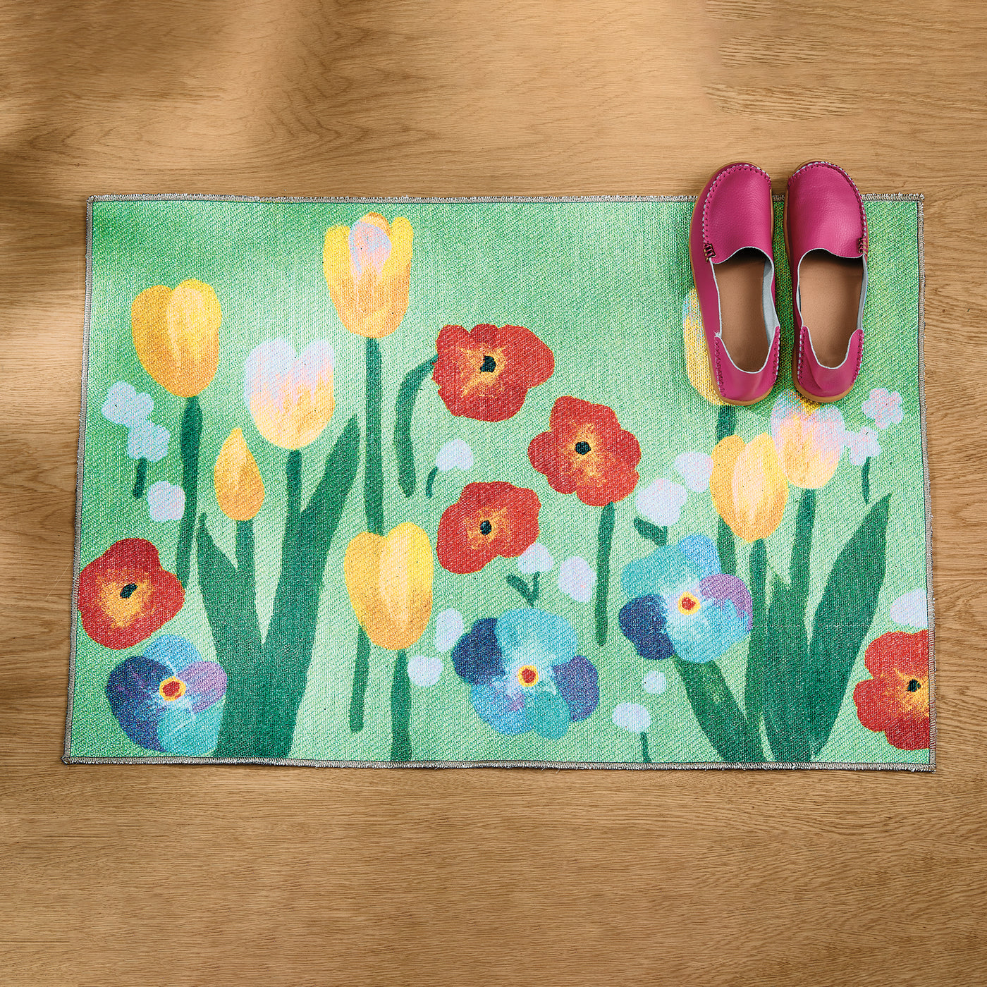 Artisan Liora of New York creates this original, colorful and whimsical design transferred onto a mat with non-skid backing. Designed in New York, loomed in Egypt. Pretty and practical for indoor or outdoor use. Polypropylene and polyester. Approx. 34.5'' x 24''.