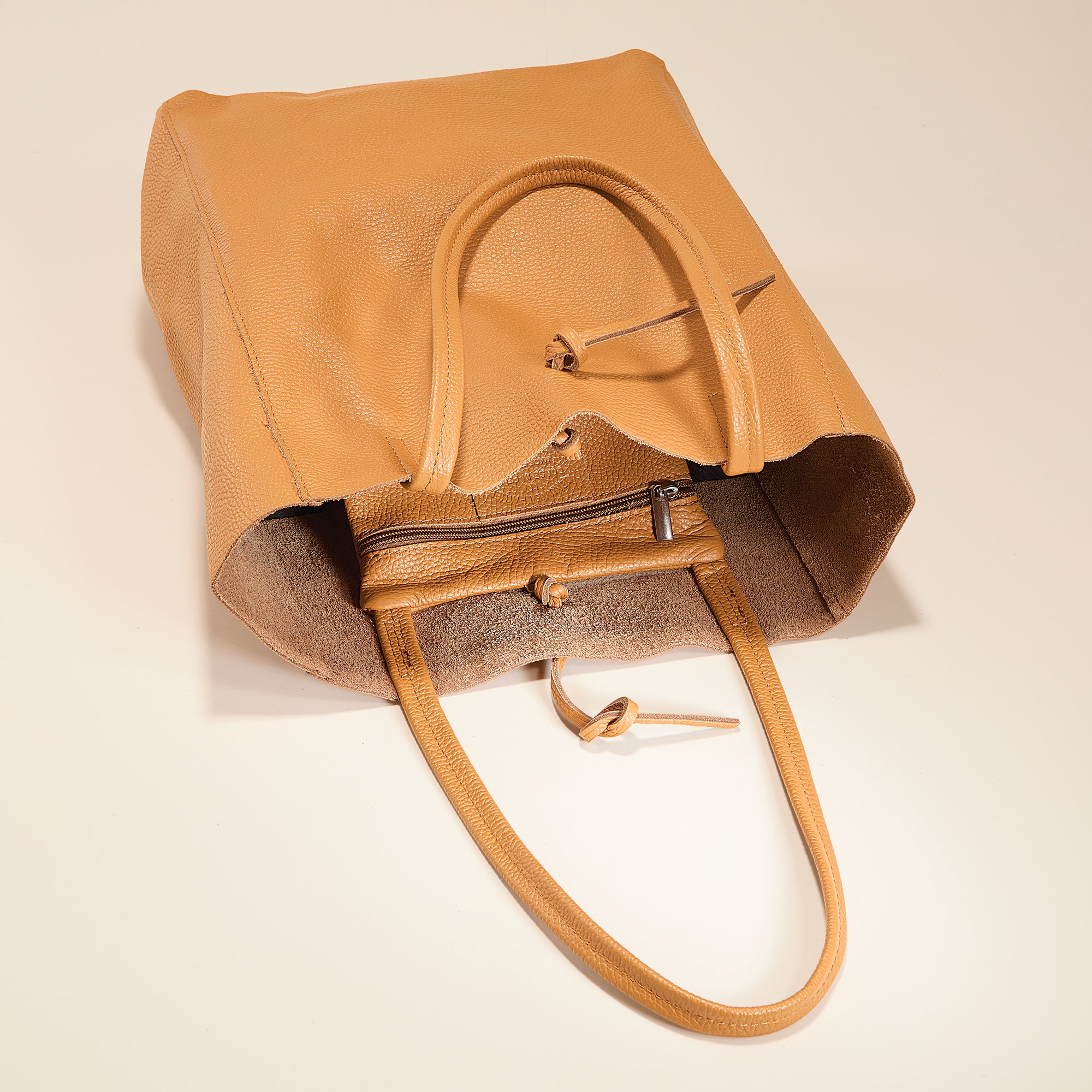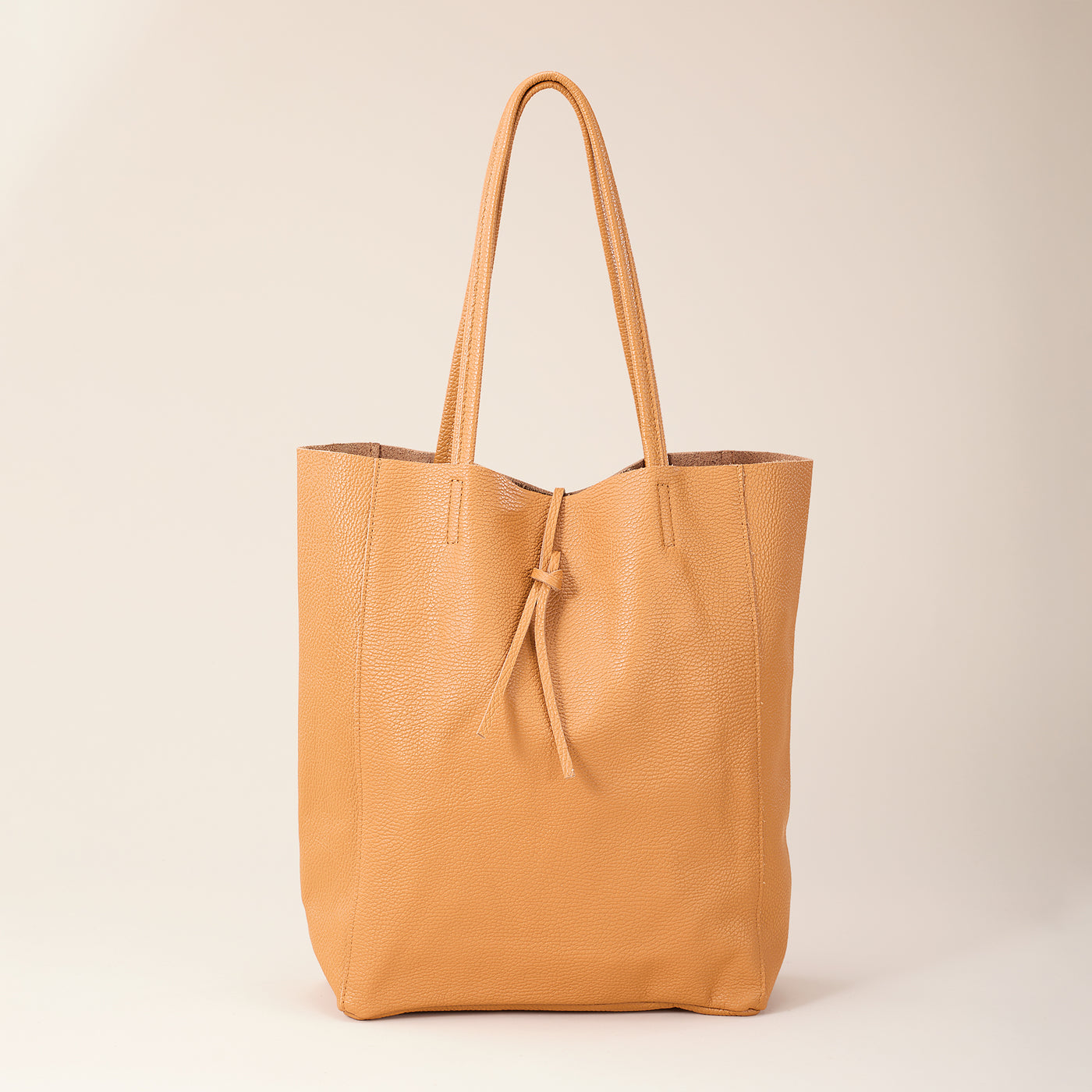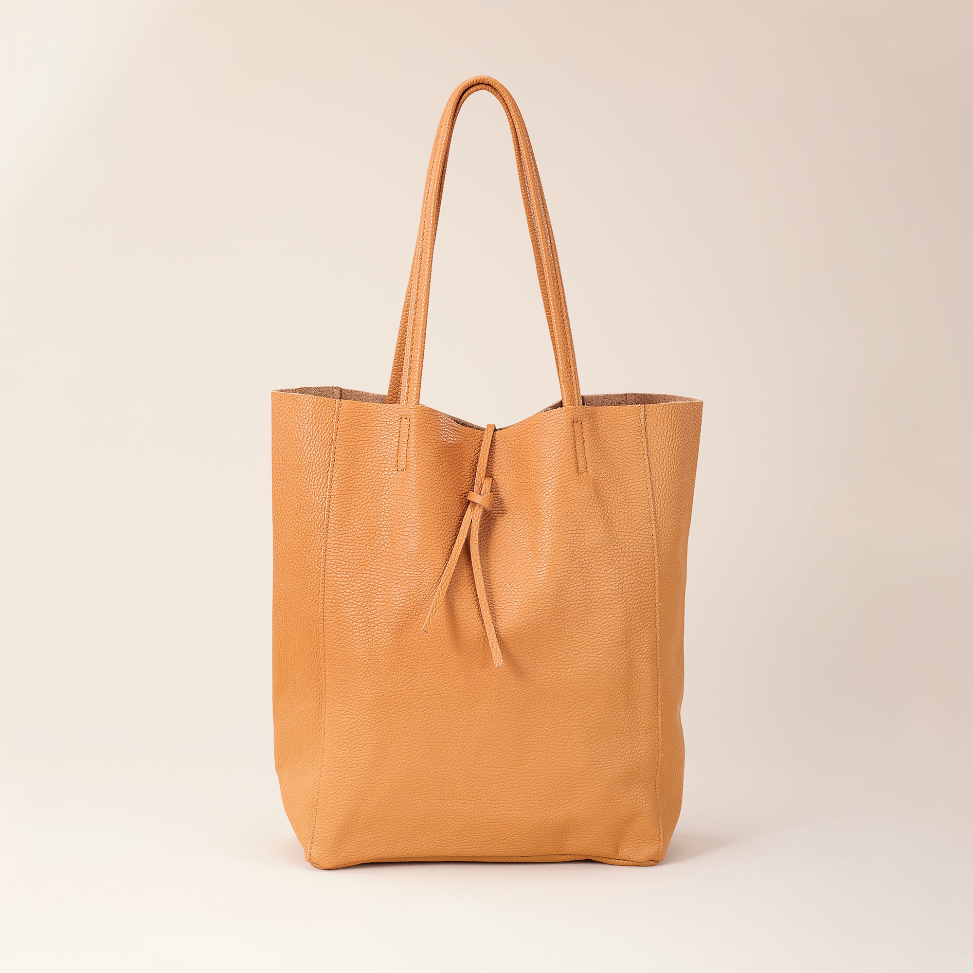Marco of Florence handcrafts our best-selling leather tote in a new, rich cognac shade. Handcrafted in Italy. Approx. 11.5'' x 5'' x 14.5'', it features 9.5'' handles, an unlined interior, zipper pouch, and a tie closure.
