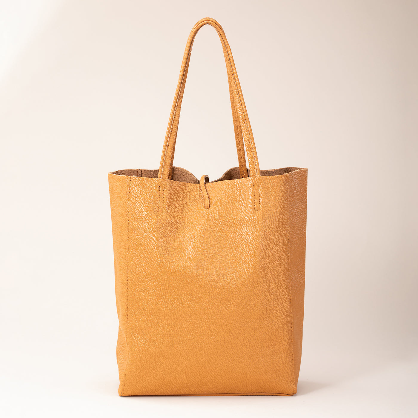 Love the simple beauty of the tote. The leather feels great. The tote holds everything I need. I love it.