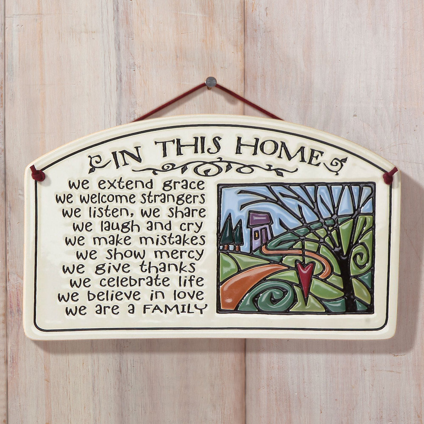 After art school, Michael's childhood dream of being a painter evolved into a passion for pottery. Now he works in his northern Wisconsin studio side by side with his sons and son-in-law, creating beautiful etched ceramics. He etches this design into clay and fires it twice to nearly 2000 degrees Fahrenheit. Cord for hanging. No two are exactly alike. 8.5 in. x 5 in.