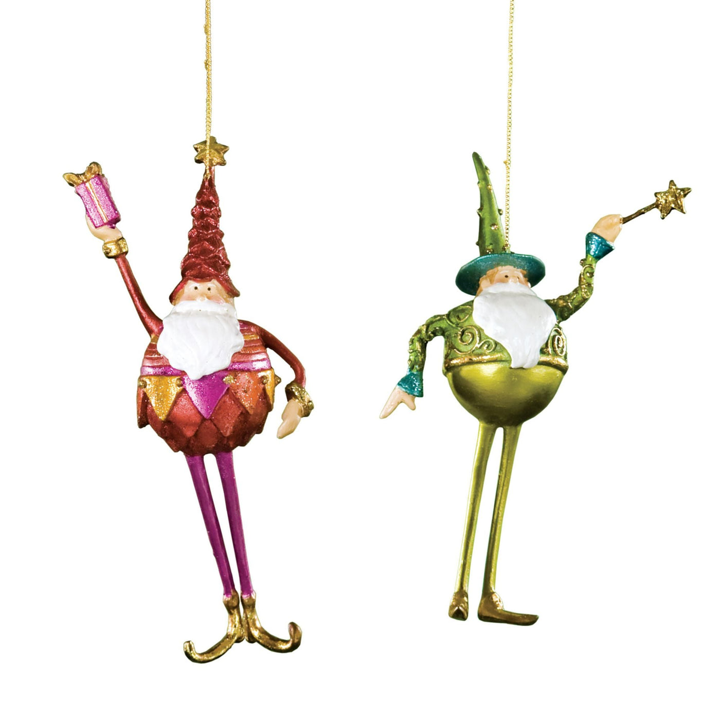 These very special renditions of Santa Claus will have more fun dancing on your tree than they would trying to climb down your chimney. The long Santa ornaments are hand-cast by our Filipino artisans from molds made from original sculptures, and then hand-painted, uno alla volta, so that no two are ever alike. Approx. 7'' tall.