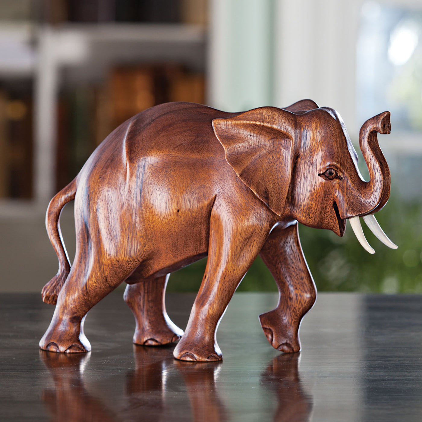 Our artisans in Bali, Indonesia handcraft each majestic lucky elephant hand-carved wooden sculpture, one at a time. They spare no detail as they hand-carve natural suar wood, then polish each piece for a smooth finish. Due to the handcrafted nature of this process, no two will be exactly alike. Each piece is signed by the artist. Handcrafted for Uno Alla Volta, from the hearts and hands of the artisans. Dimensions- 8.25 inches by 11.5 inches.