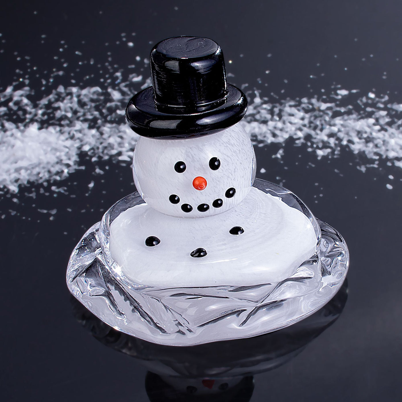With a keen sense of humor, Danny of Pennsylvania creates three phases of a melting snowman. Each ''melting'' snowman is individually hand-blown from molten glass. Certain to become a fun conversation piece! Sizes are approximate, as no two sculptures are exactly alike. Handcrafted for Uno Alla Volta, from the heart and hands of the artisan. Dimensions - Approx. 4'' dia x 3.5''.