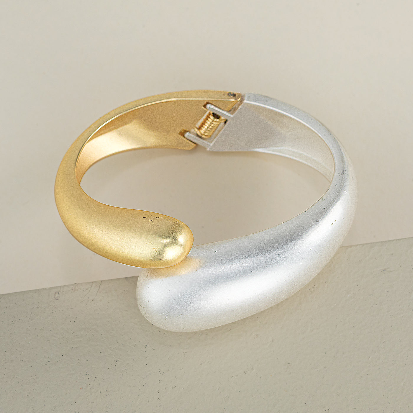 Artisan Vivian of Texas creates this eye-catching hinged bangle bracelet featuring two-toned metals. The perfect accessory for your spring wardrobe. Designed in Texas, handcrafted in Thailand. Hinged to fit most.