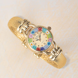 Love the cuff watch style — and the pop of color the band and millefiori provides. I have the same watch in blue. Love them!