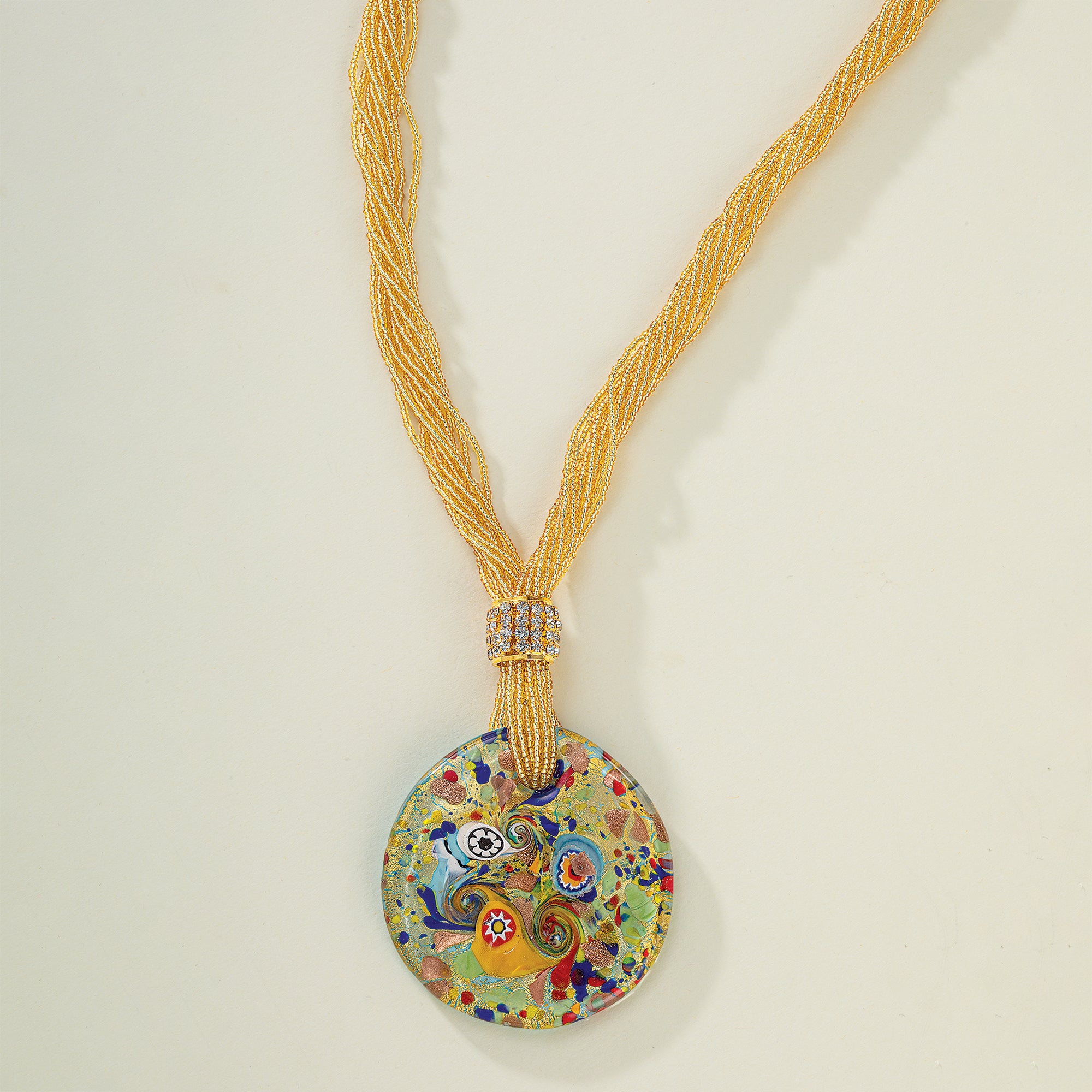 Murano Glass Millefiori Sunshine & Flowers Pendant Necklace