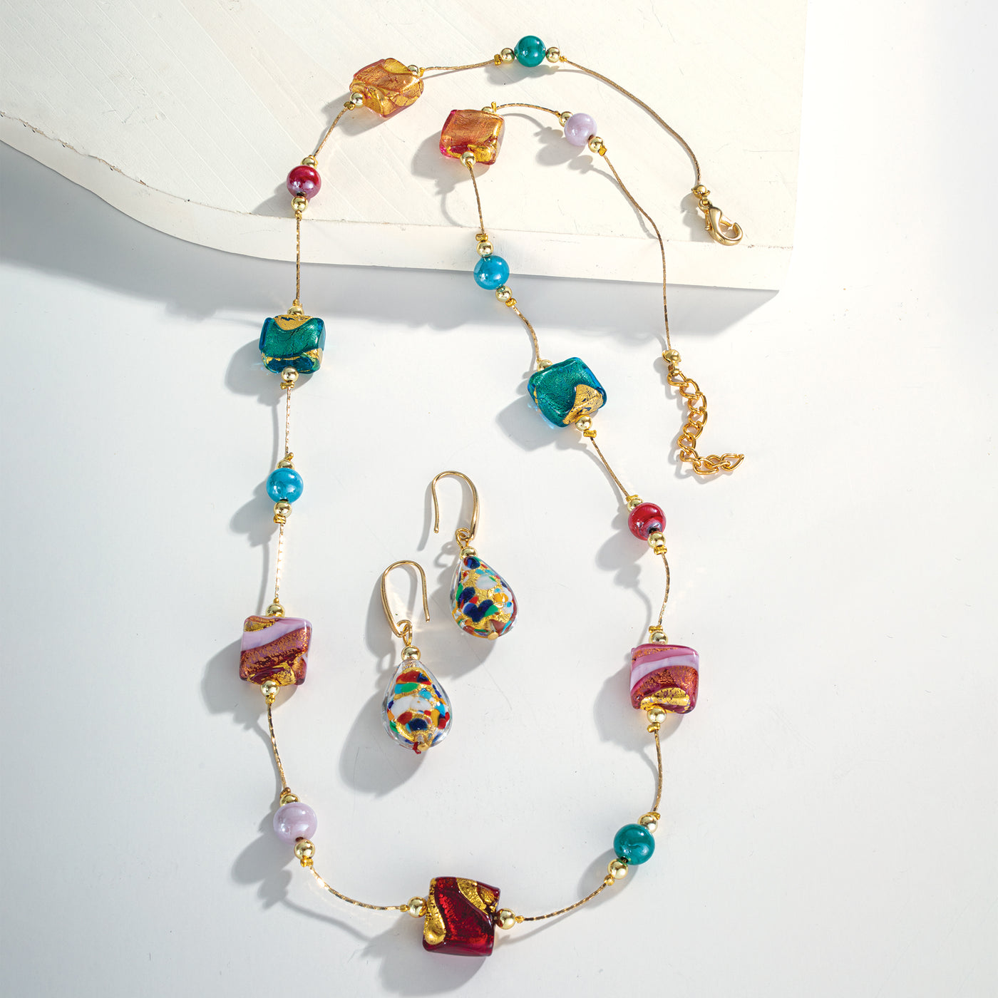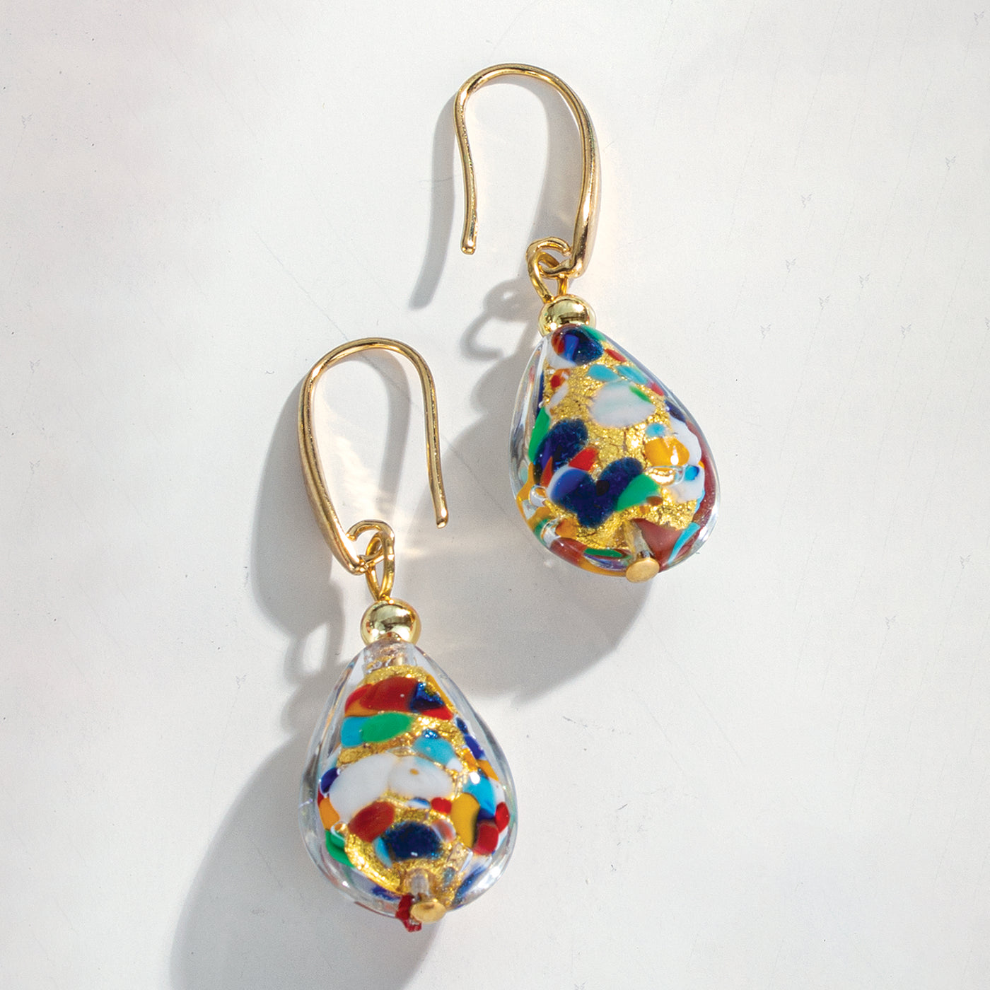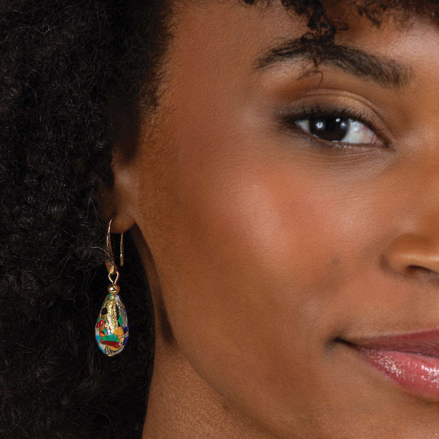 Artisans Valentina and Alessandra of Venice create these beautifully lampworked, foil-infused Murano glass teardrop bead earrings, accented with gold-plated findings. Handcrafted exclusively for Uno Alla Volta, from the hearts and hands of artisans. Approx. 1.75'' long, wires.