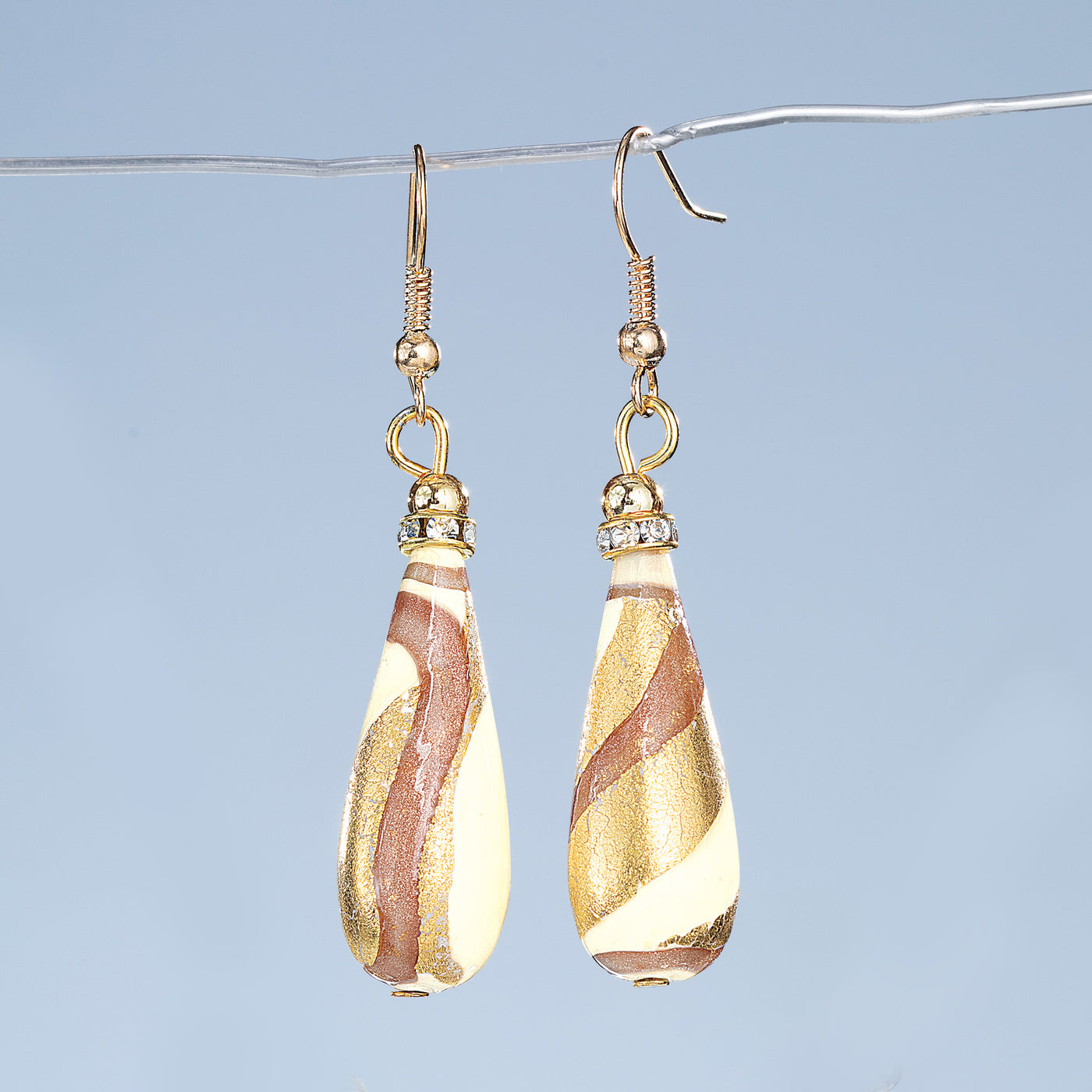 Valentina and Alessandra of Venice design and handcraft these chic, ivory earrings featuring foil-infused Murano glass drops and accent beads. A perfect complement to the Ivory Regal Raindrop Necklace. Handcrafted exclusively for Uno Alla Volta, from the hearts and hands of artisans. Approx. 2'' long, wires.
