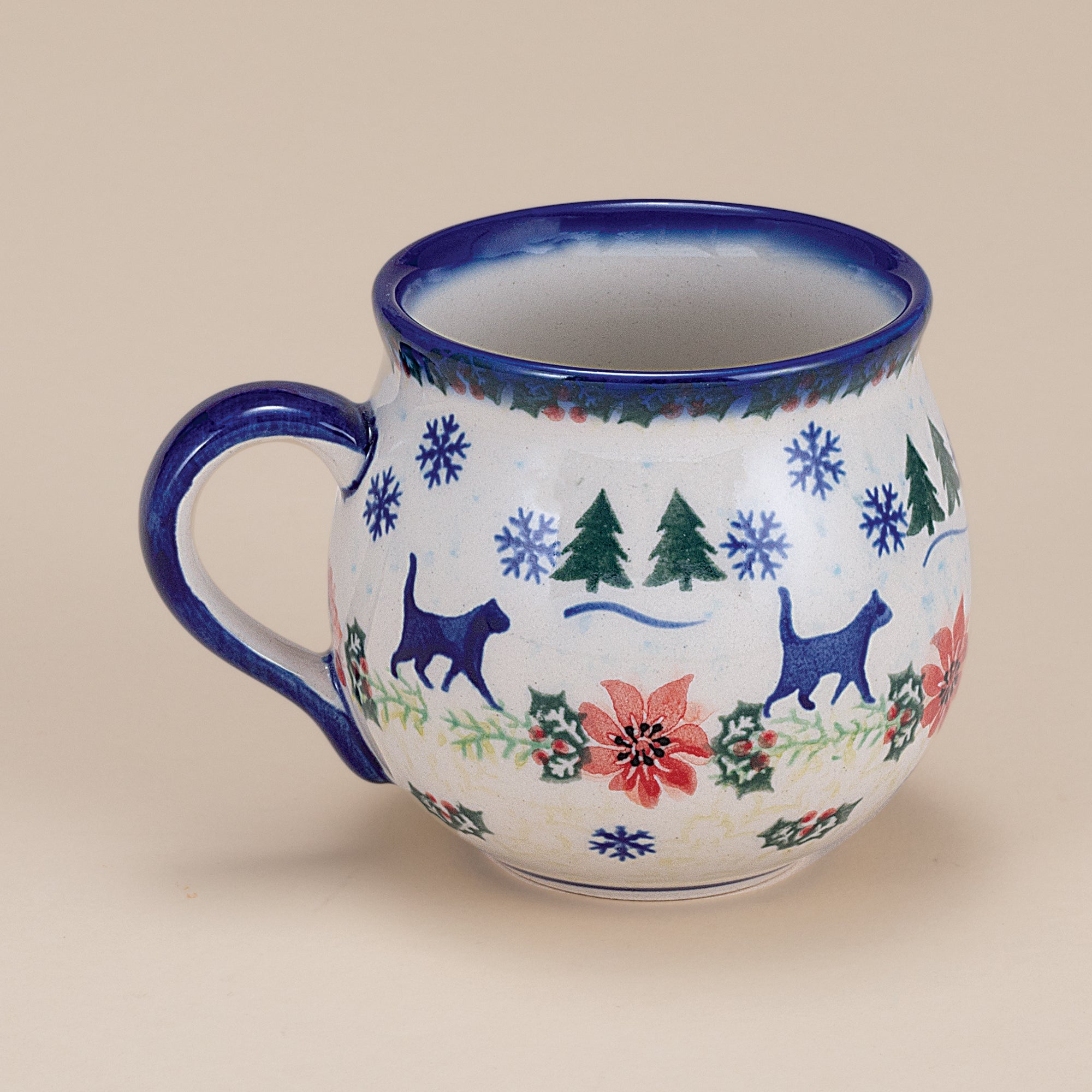 Artisans Arek and Ewa of Brzeg, Poland hand-paint each stoneware bubble mug in our exclusive kitten design. Each one is shaped from native clay before carved sponges and fine brushwork are used to add additional motifs. Microwave, dishwasher and freezer safe. Handcrafted exclusively for Uno Alla Volta, from the heart and hands of the artisan. Approx. 4” tall, holds 11 oz.