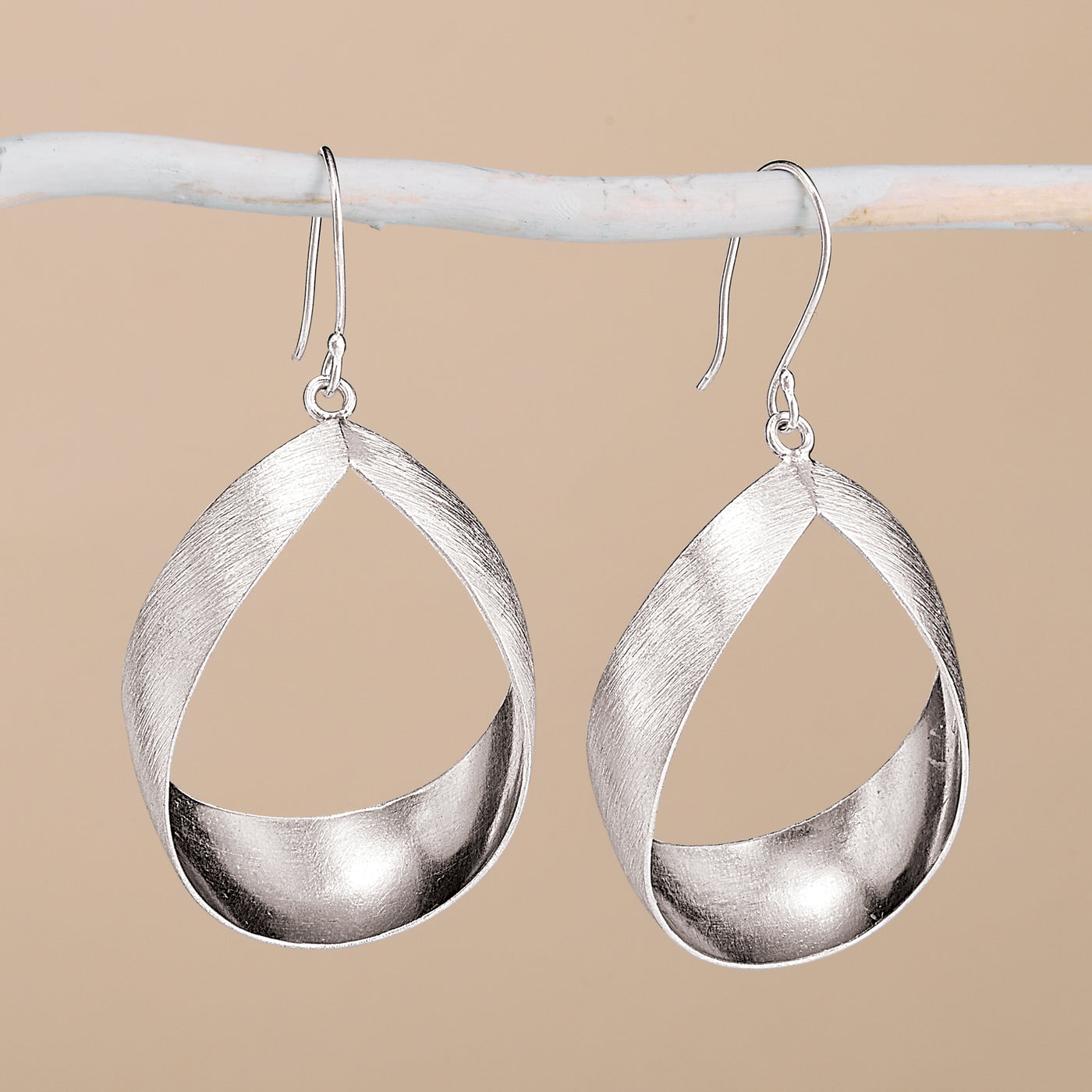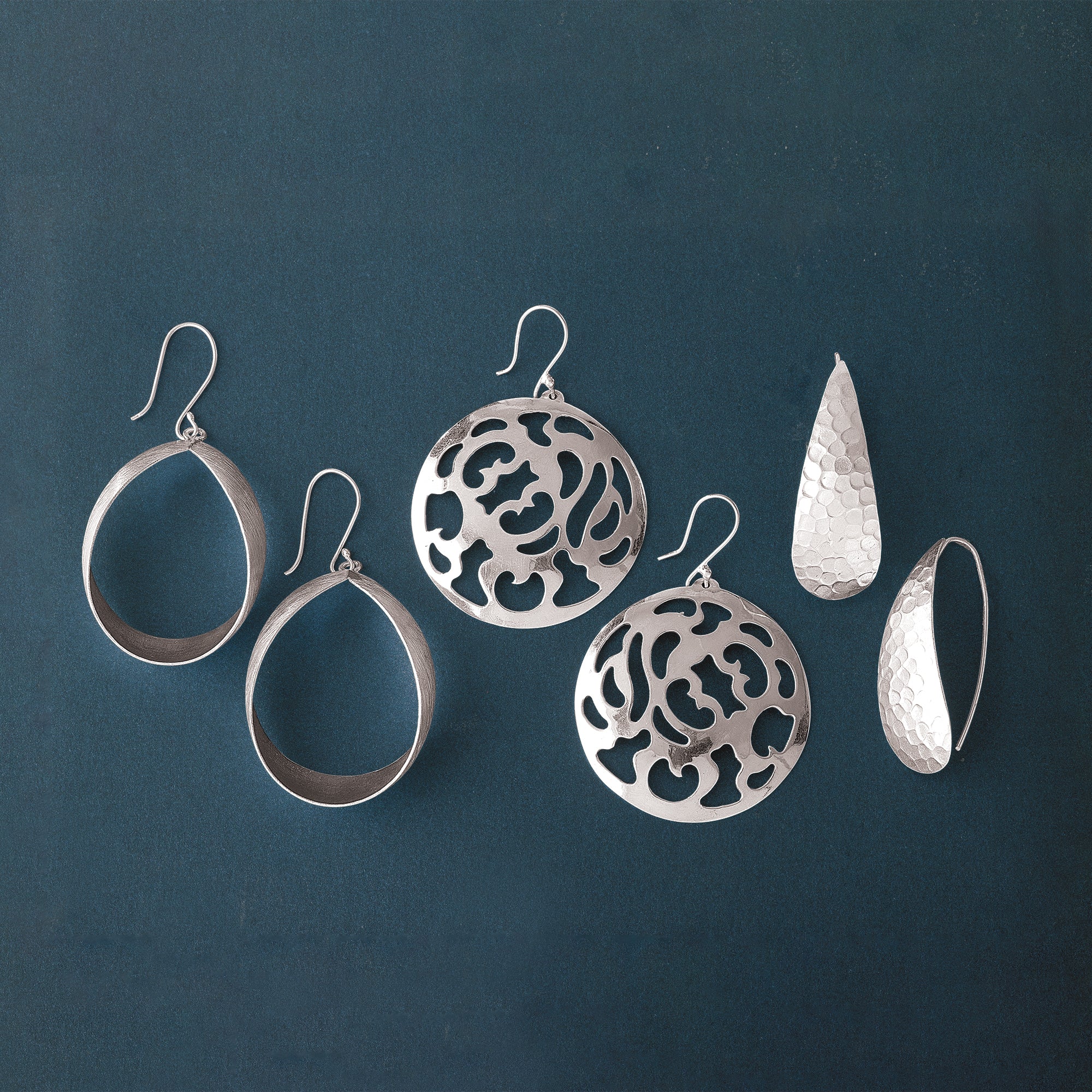 Artisan Vivian of Texas designs these large, open teardrop earrings with a brushed finish. Perfect for everyday or a special occasion. Designed in Texas, made in Thailand. Crafted in sterling silver. Approx. 2.5'' long, wires.