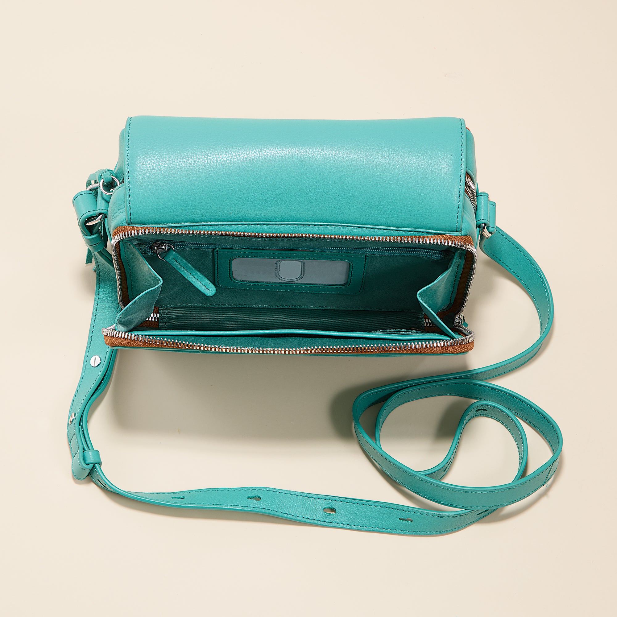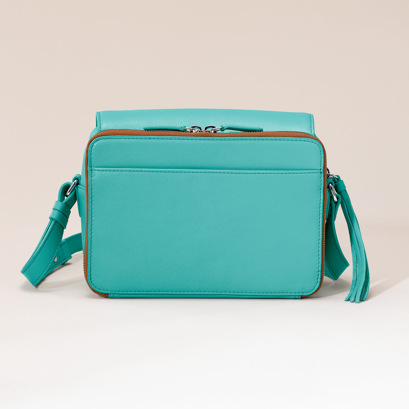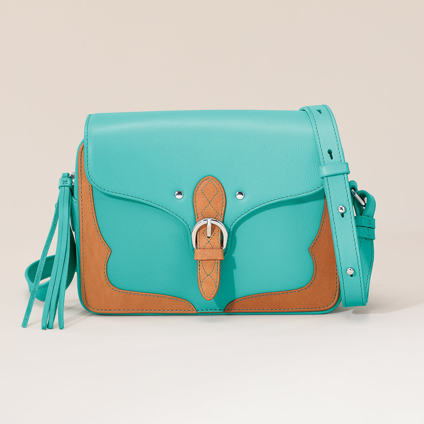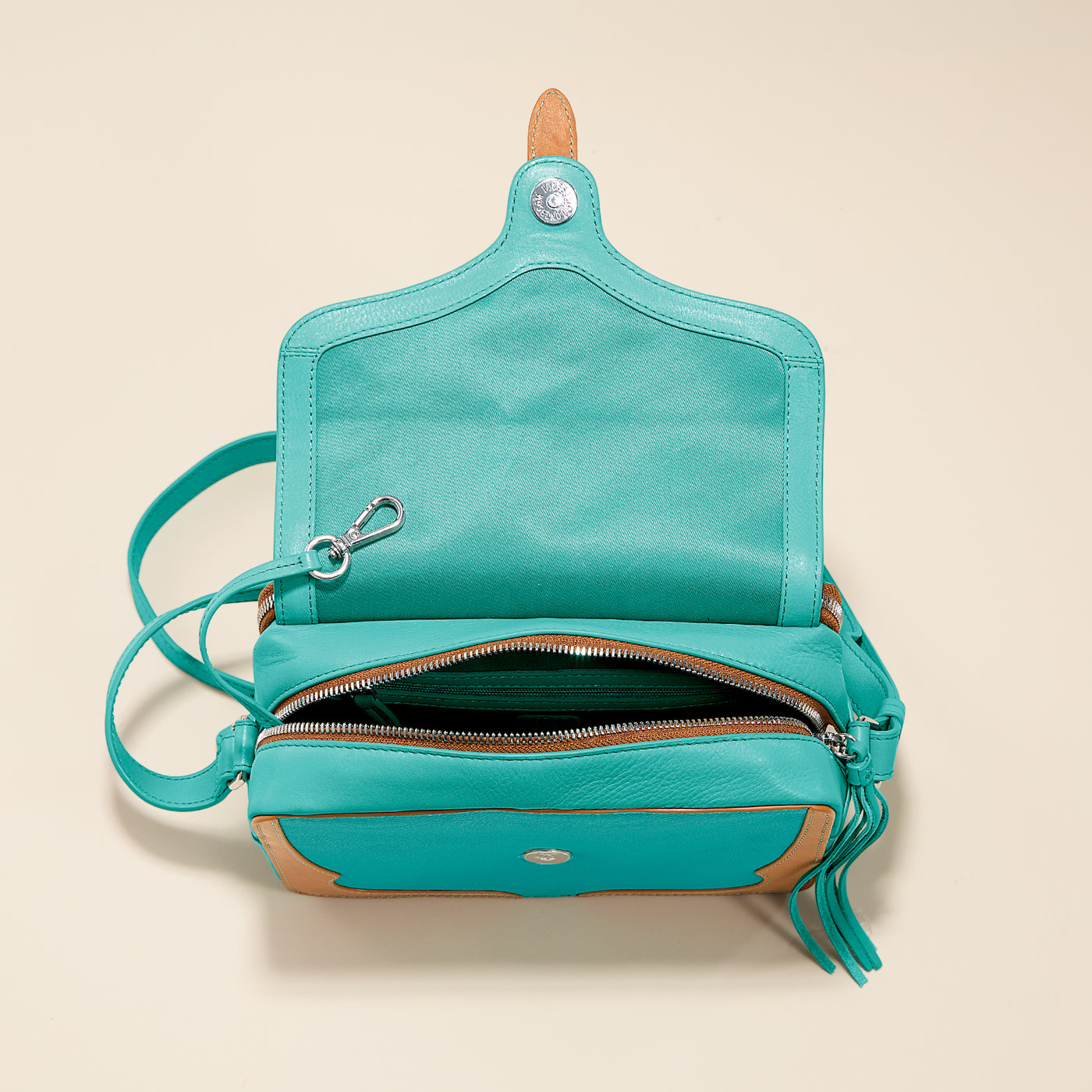 Our artisans of New York handcraft this crossbody bag from supple leather with antique saddle leather accents. Approx. 9'' x 4'' x 7'', it features a 26'' adjustable shoulder strap, exterior and interior zipper and slip pockets. Cloth lined, it also features a key leash, tassel accent, and a zipper and snap closure. With RFID protection.