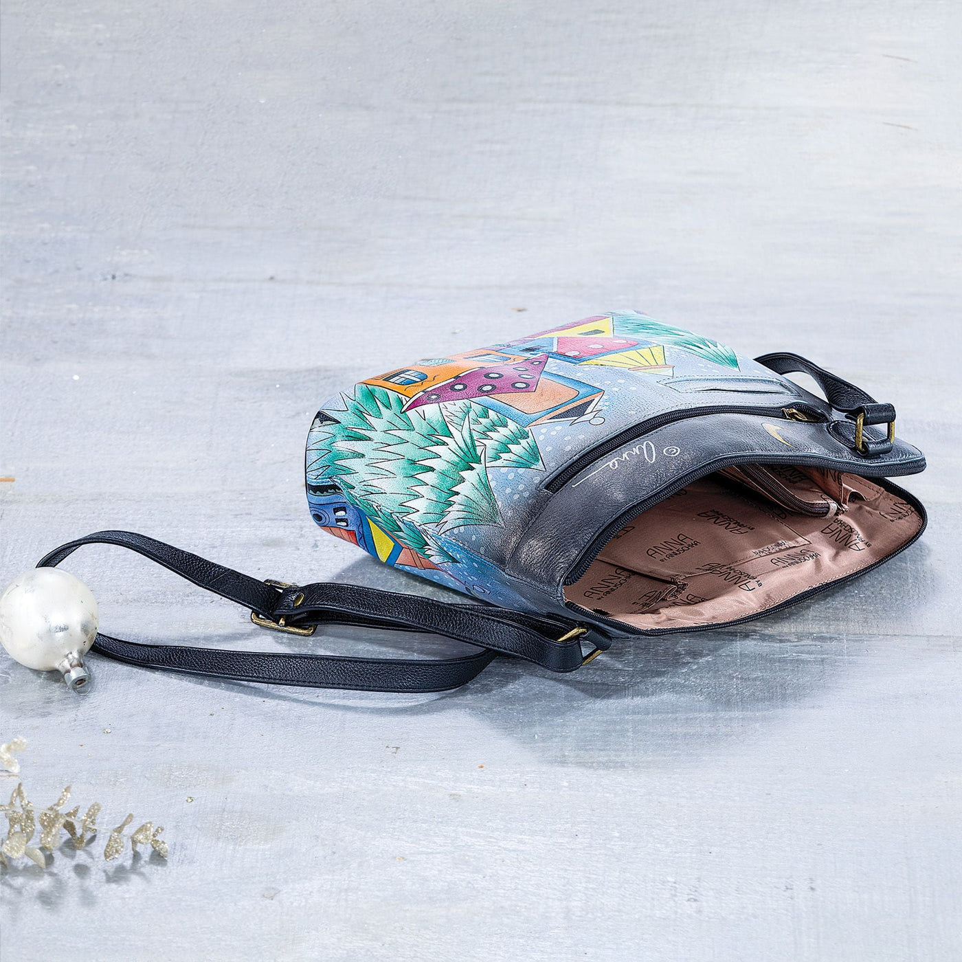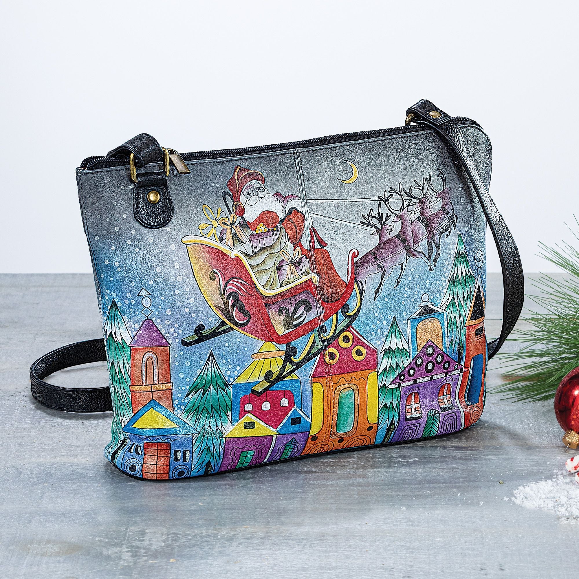 Santa's Sleigh Hand-Painted Leather Crossbody