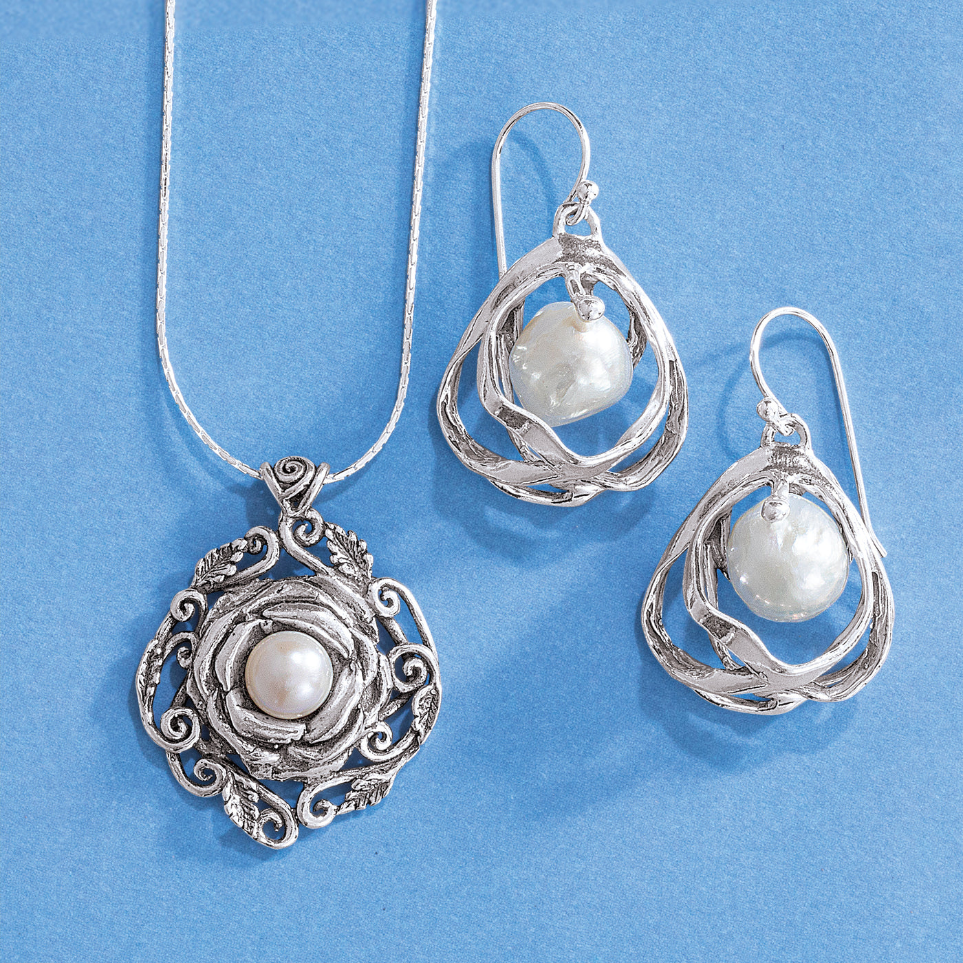 Tamir of Israel designs and handcrafts these earrings featuring glass pearls nestled in a freeform sterling silver frame. Pairs perfectly with the Sterling Silver Nestled Pearls Necklace. Approx. 1.75'' long, wires.